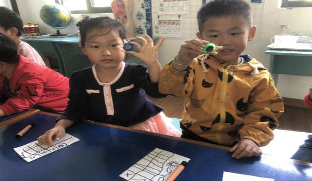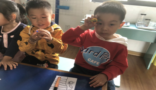 “找呀找呀找朋友......老师,我找到了!”柯柯开心的大叫“这个小钉子是磁铁的好朋友,还有我们的椅子。”“老师,门锁也是。”紧接着明明也找到了......原来磁铁可以吸住铁制品,好神奇呀!
