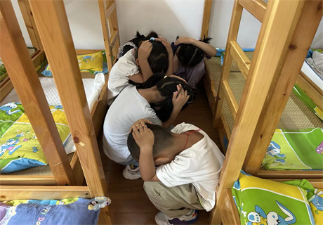 模拟警报声一响,老师们迅速组织幼儿有序奔向最近教室躲避逃生。他们用桌子等重物堵住门口,引导幼儿躲到隐蔽角落,防止“歹徒”闯入。整个过程紧张有序,孩子们在老师指挥下冷静应对。此次演练效果良好,进一步增强了全园师生的安全防范意识,提升了教职工应对突发性恐怖暴力事件的紧急应变能力,也检验了幼儿园安全防范工作的成效,有力推动了防恐防暴工作的开展。